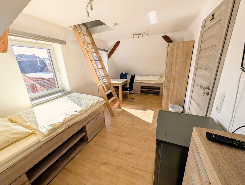 Unsere hellen und modern ausgestatteten Zimmer sind perfekt auf die Bedürfnisse von Monteuren und Langzeitgästen zugeschnitten, um maximale Erholung und Privatsphäre zu gewährleisten: